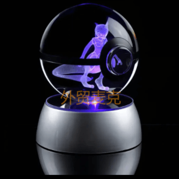 它是一个带有底座的,会发光的3D水晶球,里面有个动漫人物的样式,我不太关注动漫领域,可能是来自于某个动漫或者游戏。