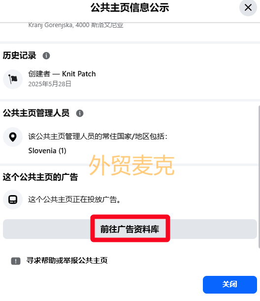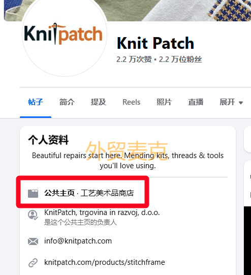 下面分享一下,怎么查看FB主页下面投放的广告,以Knit Patch为例: