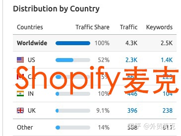 3、网站访客最多的是美国客户,随后依次是加拿大、印度和英国。美国是英文独立站的最大的客户来源国。