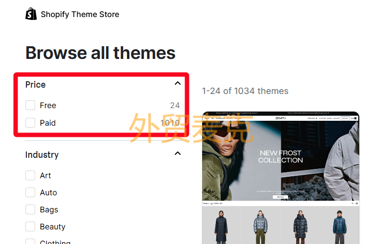 Shopify 官方其实提供了很多的免费主题。